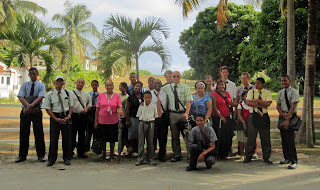 Nu har vi tillbringat två lärorika dagar i Villa Gonzalez igen! Högsta närvaroantalet var 2083, och 22 blev döpta. Så känslan var lite annorlunda när vi lyssnade till samma program på svenska i Nykarleby för en dryg månad sen... Men innan sammankomsten behöver det städas! Grabbarna åkt ner på fredagen och fick uppdaget att kratta i solgasset.